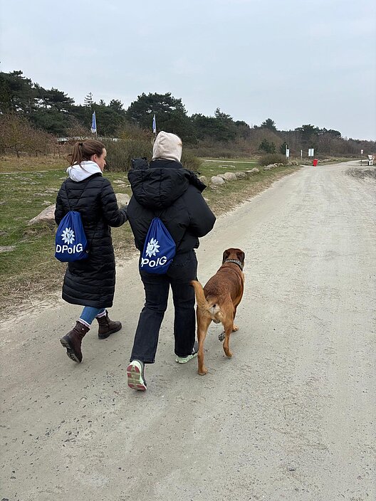 Auch das Wetter zeigte sich von seiner norddeutschen Seite: wechselhaft, mit einer frischen Brise und einem kurzen Nieselregen. Doch davon ließ sich niemand die gute Laune verderben - im Gegenteil, es trug fast schon zur authentischen Atmosphäre bei. Zwei vierbeinige Begleiter sorgten zusätzlich für gute Stimmung und begleiteten die Gruppe treu auf der Strecke.