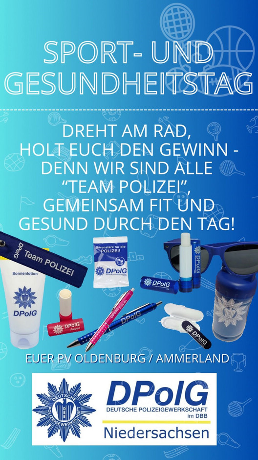 Traditionell hat sich auch die DPolG aktiv am Rahmenprogramm beteiligt. Unter dem Motto „Team Polizei, gemeinsam fit und gesund durch den Tag“ wurden durch Mitglieder des PV Oldenburg-Stadt / Ammerland diverse Gimmicks unter die Leute gebracht und interessante Gespräche mit den Kolleginnen und Kollegen geführt.