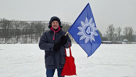 Ich heiße Dirk, bin Zivilkraftfahrer bei der PI Hameln-Pyrmont/Holzminden und treffe auf meine DPolG Kollegen, die nach einem heißen Tee für den 11 Uhr-Aufmarsch bereitstehen. Der Tross formiert sich und wir reihen uns mit unseren blauen Fahnen und Spruchbändern in die sich bildende Schlange der Streikenden ein. Die Menschen pfeifen, rasseln, sie machen auf ihre Forderungen aufmerksam. Forstbedienstete blasen auf ihren Jagdhörnern, die Stimmung nimmt Fahrt auf, es knistert! Vor der Staatskanzlei verharren wir, sind laut, unterstreichen so die Forderungen des dbb. Der lange Zug Streikender legt die Innenstadt teilweise lahm. Begleitet durch die Polizei geht es über rote Ampeln bis hin zum Ernst-August-Platz. Hautnah erleben wir, wie der Staat unsere im Grundgesetz verankerten Rechte sicherstellt, das ist wunderbar und lebendige Demokratie. Zur eigentlichen Kundgebung sind Alexander Zimbehl und Volker Geyer erschienen. Die Redner tragen die geforderten Ziele vor, berichten von den bisher gescheiterten Verhandlungen und dem Unverständnis der Arbeitgeber, die keine Gründe erkennen, einen leistungsfähigen ö.D. zu erhalten und diesen auch zu stärken. Für das leibliche Wohl ist ebenfalls gesorgt, so findet die Kundgebung letztlich einen angenehmen Abschluss.